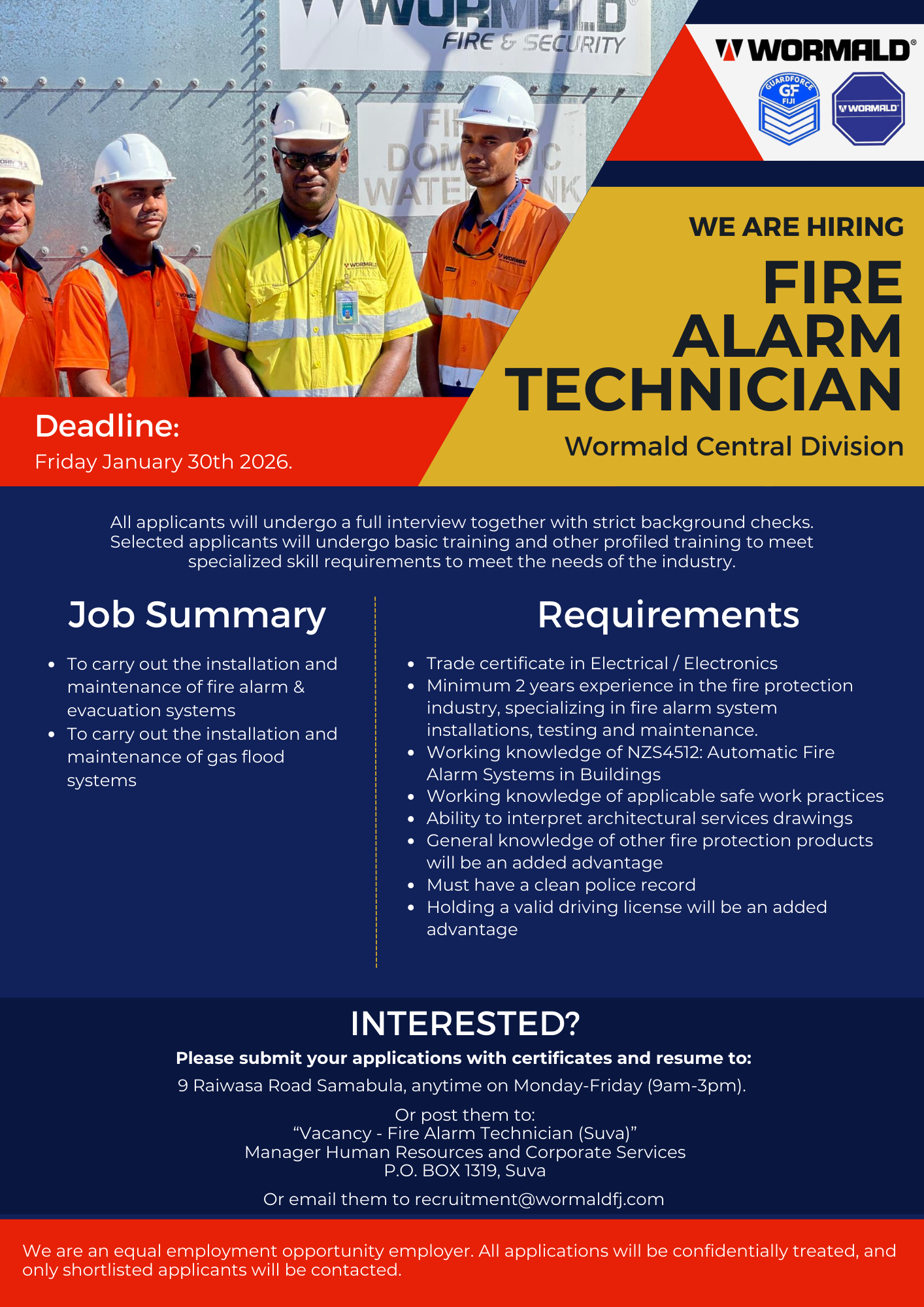 Vacancy – Fire Alarm Technician CENTRAL DIVISION